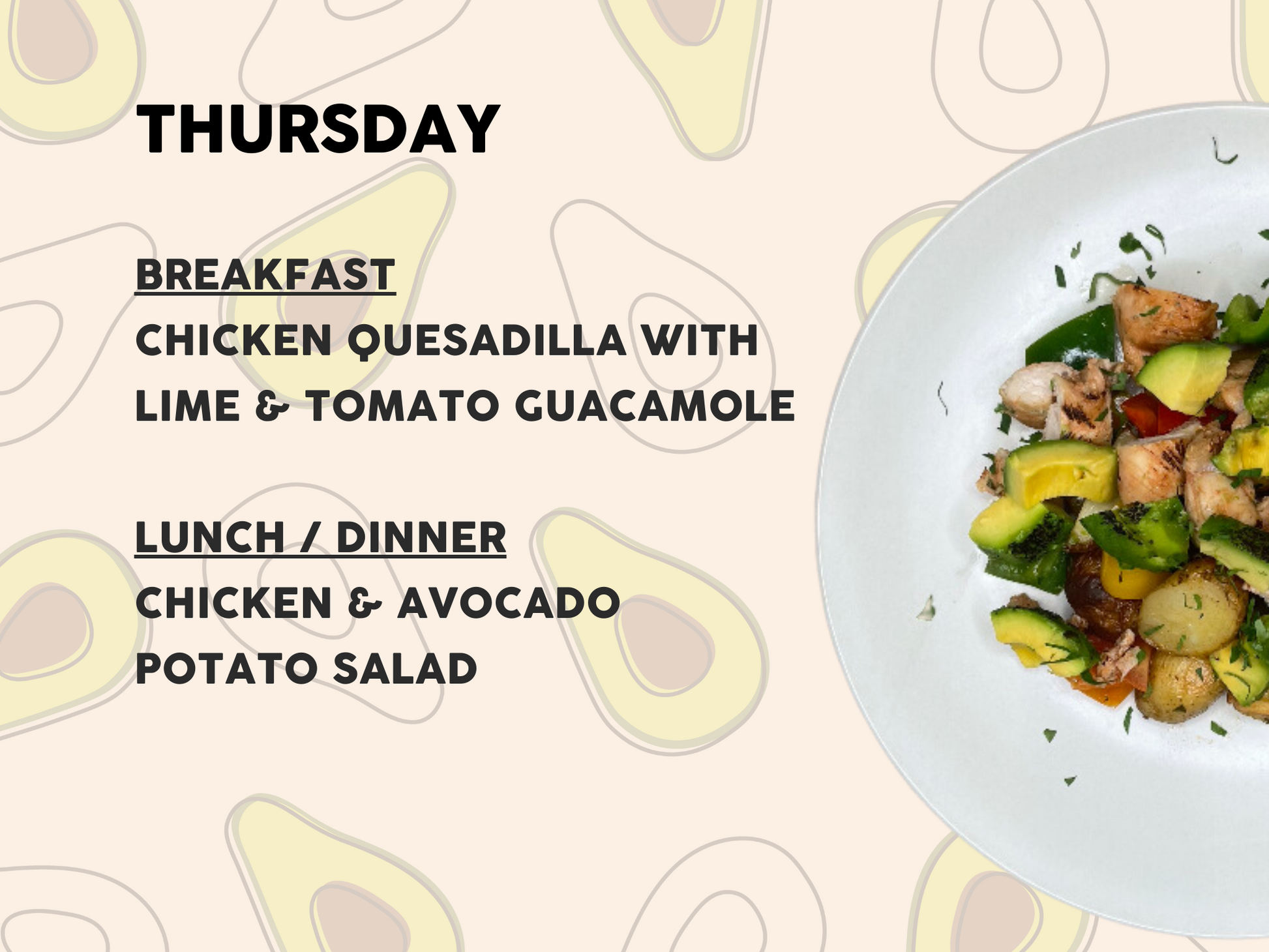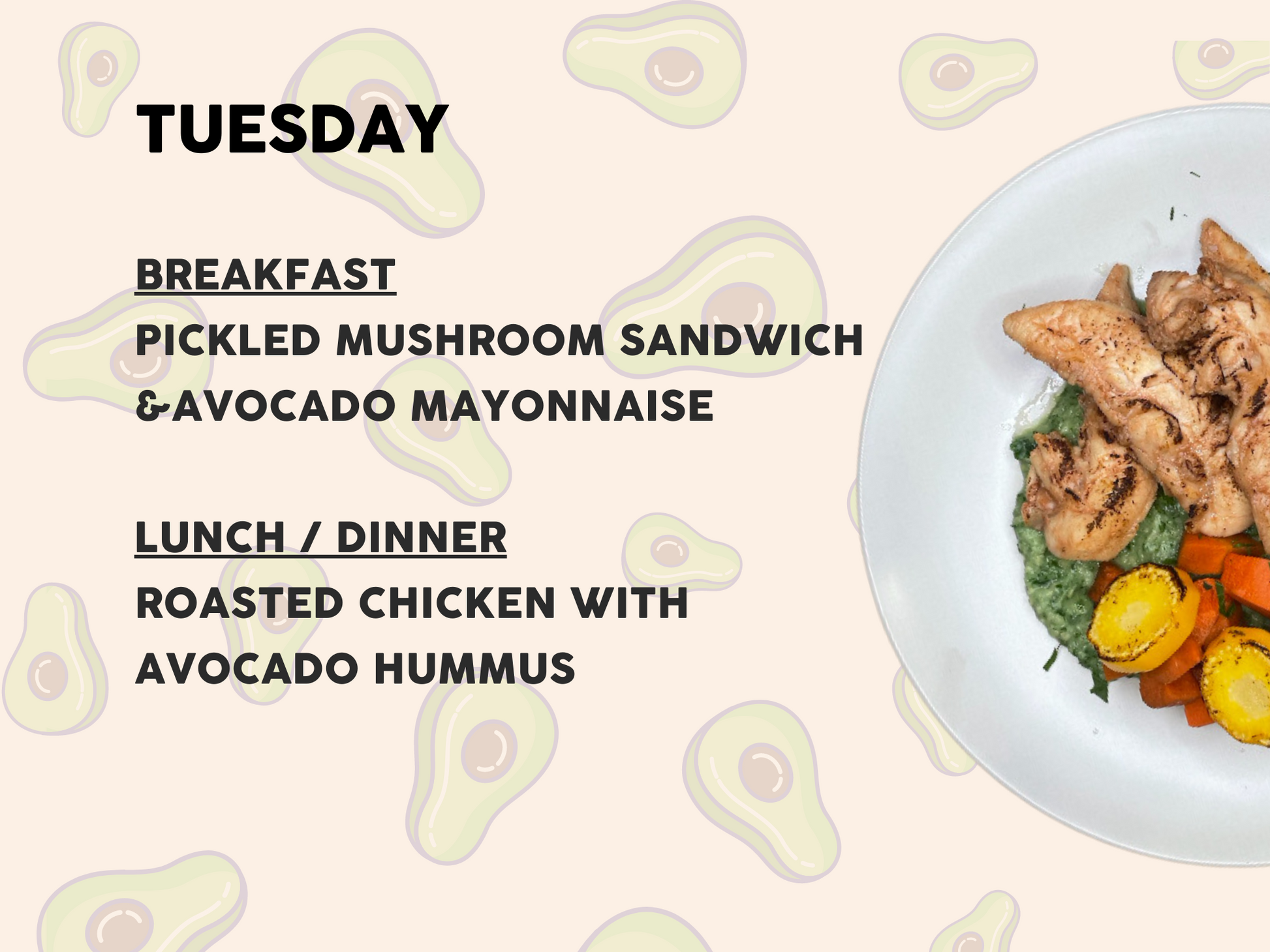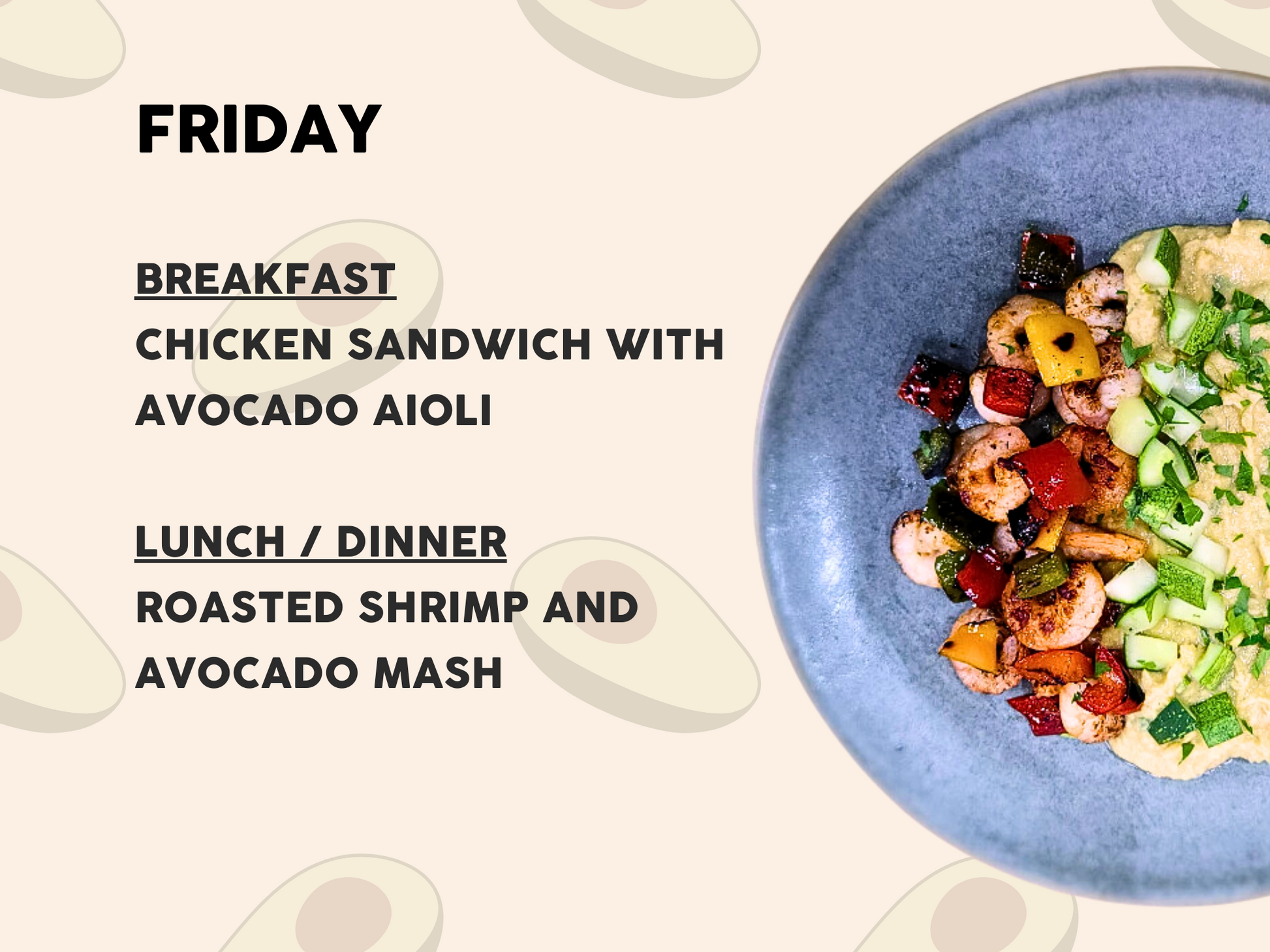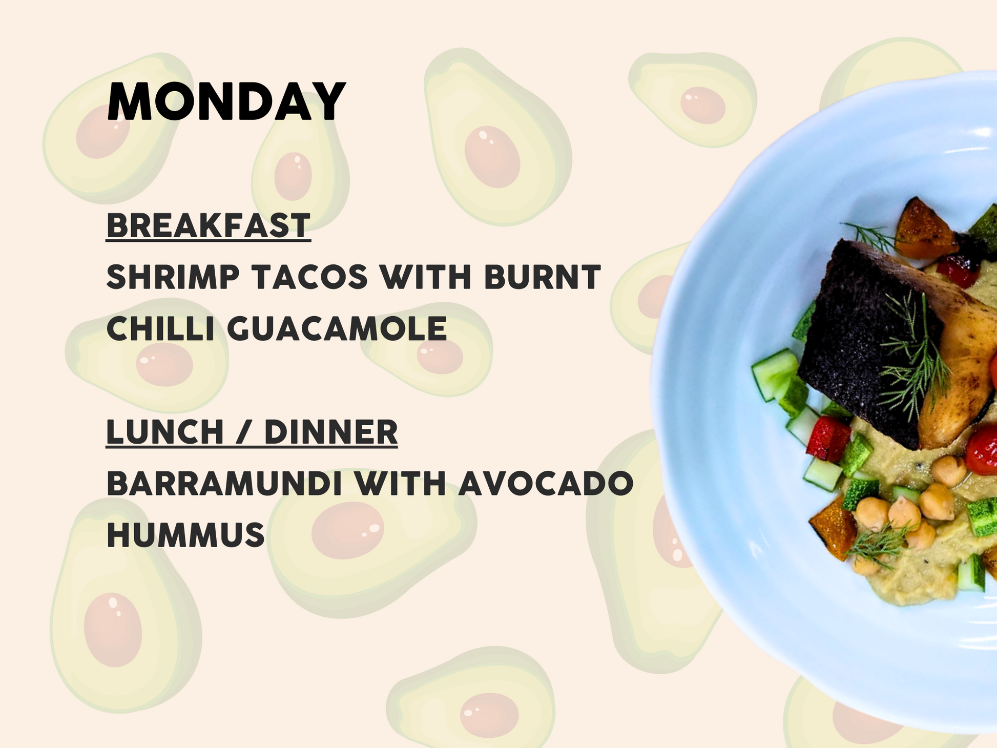This Australian Avocado plan covers your daily meals for breakfast, lunch or dinner from Monday to Friday.
