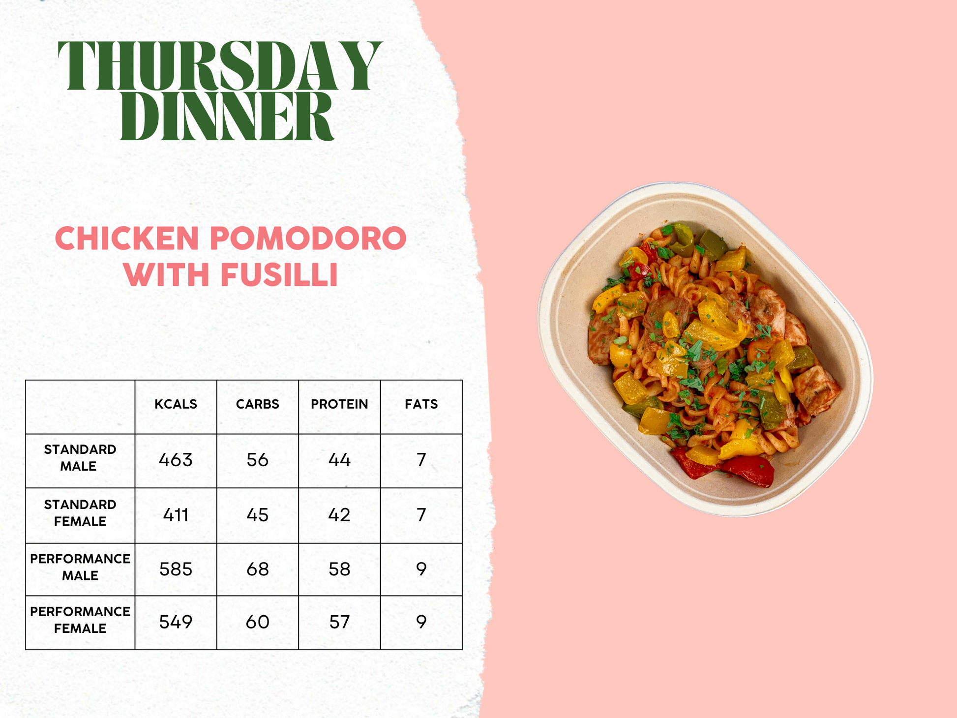 Note: Please check our menu items for any dietary restrictions you may have. If you do have any restrictions, kindly leave us a notification and we’ll get back to you. Performance meal plans are larger in portion size and calories, and are recommended for highly active individuals who require more. If you wish to opt out of vegetarian meals, there will be a supplemental charge. Any dishes swapped out will be replaced with another dish from the menu of the week. Thank you for your kind understanding.