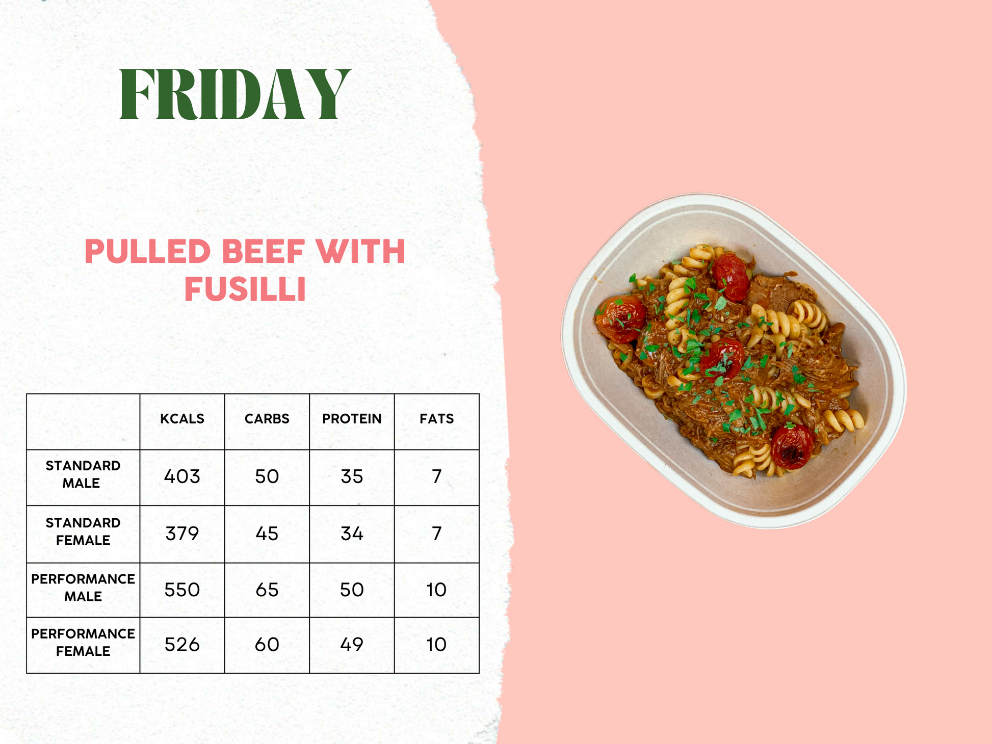 This plan covers your daily meals for lunch or dinner from Monday to Friday.